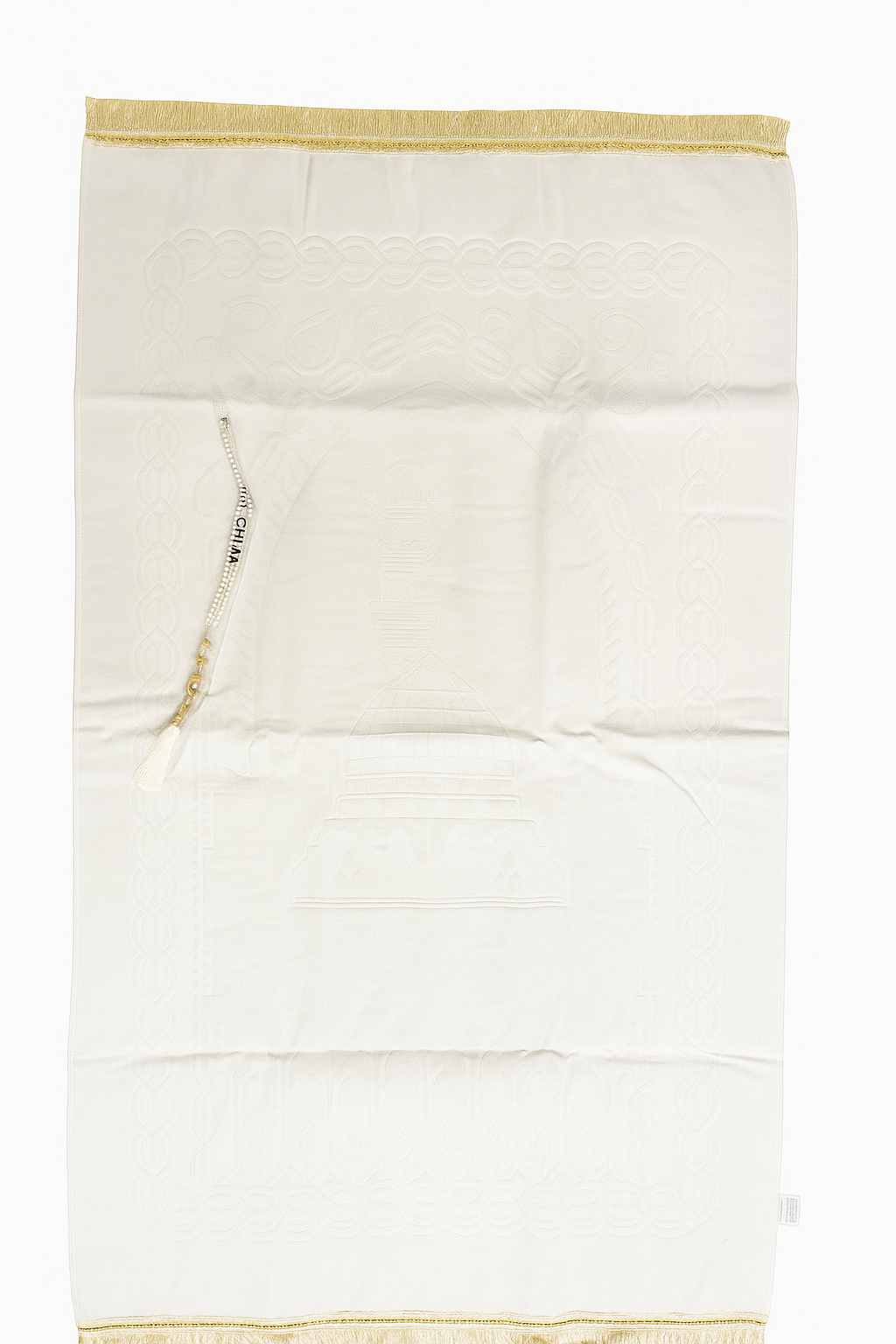 Coffret “Noor Al Qalb” – Tapis de prière et chapelet assorti couleur crème  – 124 × 67 cm
