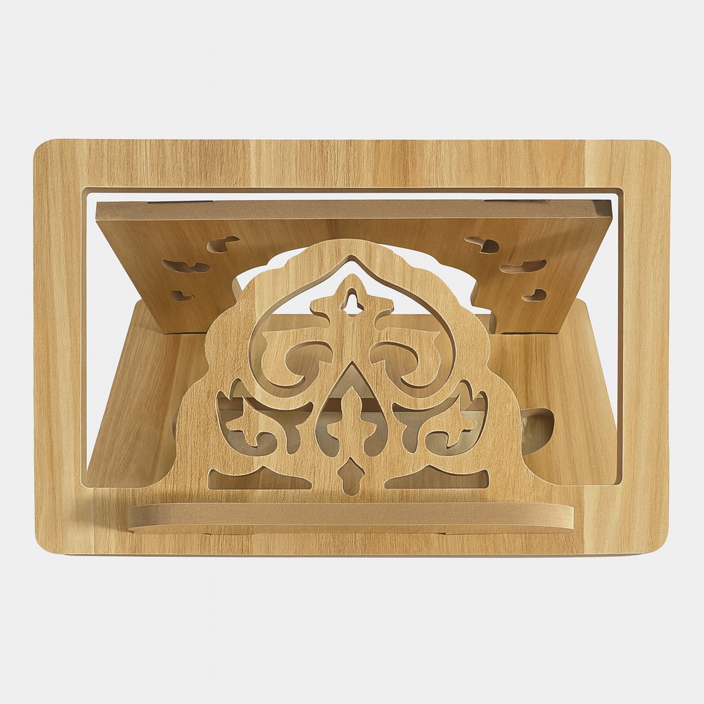 Découvrez ce support Coran en bois ajustable, un modèle à la fois moderne, pratique et raffiné, idéal pour accompagner vos moments de lecture et de spiritualité. Conçu dans un bois à l’aspect naturel et chaleureux, il présente une découpe centrale élégante, inspirée de motifs orientaux, qui lui donne un style unique et sophistiqué.