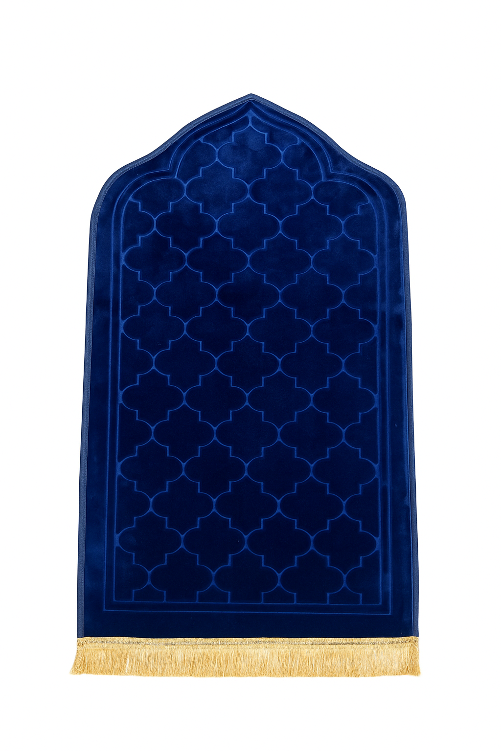 Avec ses dimensions 65 × 110 cm, ce tapis de prière est compact, léger et facile à transporter, idéal aussi bien pour la maison, le voyage ou le camping. Son design usiné aux motifs géométriques en relief et ses franges dorées lui confèrent une allure raffinée et moderne.