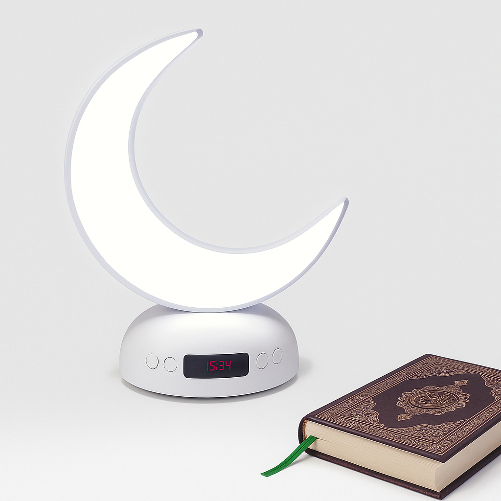 À la fois veilleuse élégante, haut-parleur Bluetooth et outil d’apprentissage du Coran, elle diffuse une lumière douce tout en récitant le Saint Coran avec un son pur et apaisant.